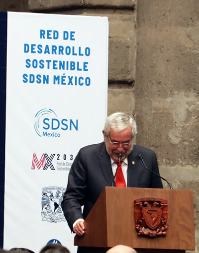 “Esta iniciativa global es una aspiración a una vida en armonía con nuestro ambiente en sociedad y en prosperidad. Para lograrlo, tenemos que involucrarnos todos: el Estado, la sociedad civil, el sector privado, redes de expertos y muy particularmente las instituciones educativas, para que juntos y en colaboración, podamos encontrar el futuro al que todos aspiramos”, asentó el rector de la UNAM.