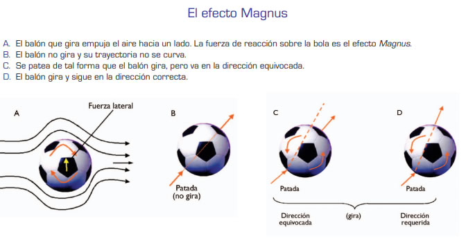 Lo que han encontrado los físicos que se dedican a estos problemas es que existe un efecto llamado “Magnus”, que consiste en el hecho de que cuando una pelota va dando vueltas y moviéndose en el aire, aparece una fuerza perpendicular a la dirección del movimiento del centro de masa de la pelota. Lo que los buenos futbolistas hacen es darle chanfle y darle un ímpetu tal que haga llegar la pelota, por un lado, a la portería, pero al darle efecto induce una fuerza perpendicular, llamada fuerza de “Magnus”.